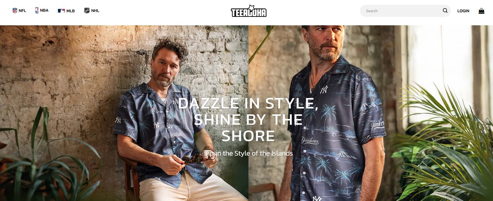 TeeAloha offers a vibrant collection of officially licensed Hawaiian shirts featuring the logos, colors, and mascots of various NFL, MLB, NH