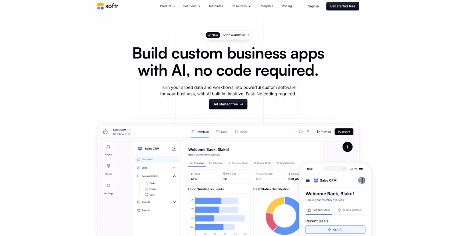 | Softr | AI template generation, smart component suggestions | Web | Free version + paid plans | Internal tools and dashboards |