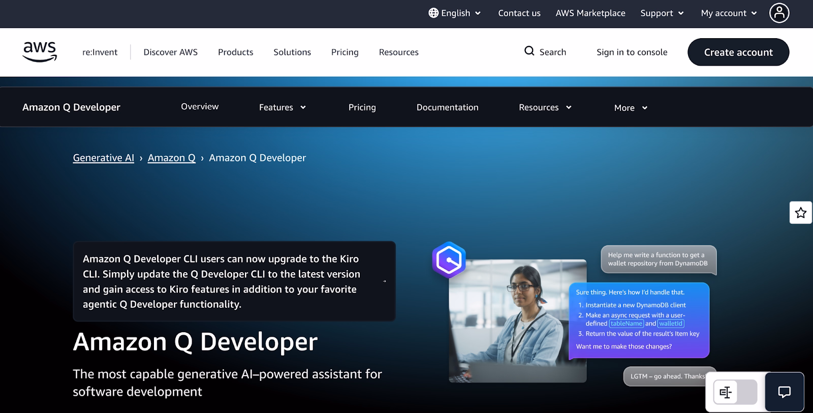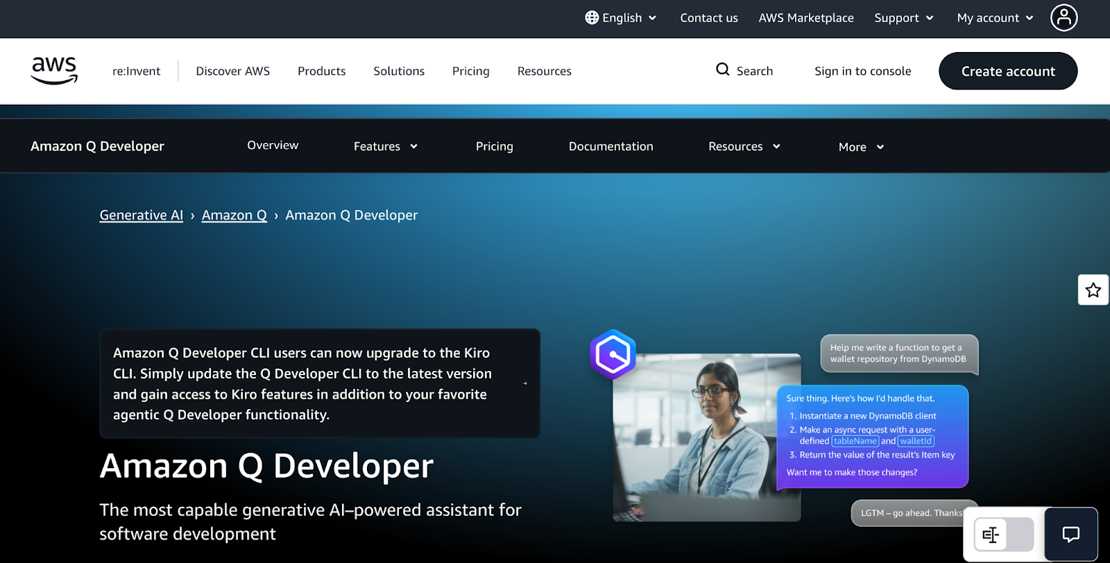 Best suited for: Developers who build cloud-native or serverless systems within AWS and want to leverage generative AI to streamline backend workflows.