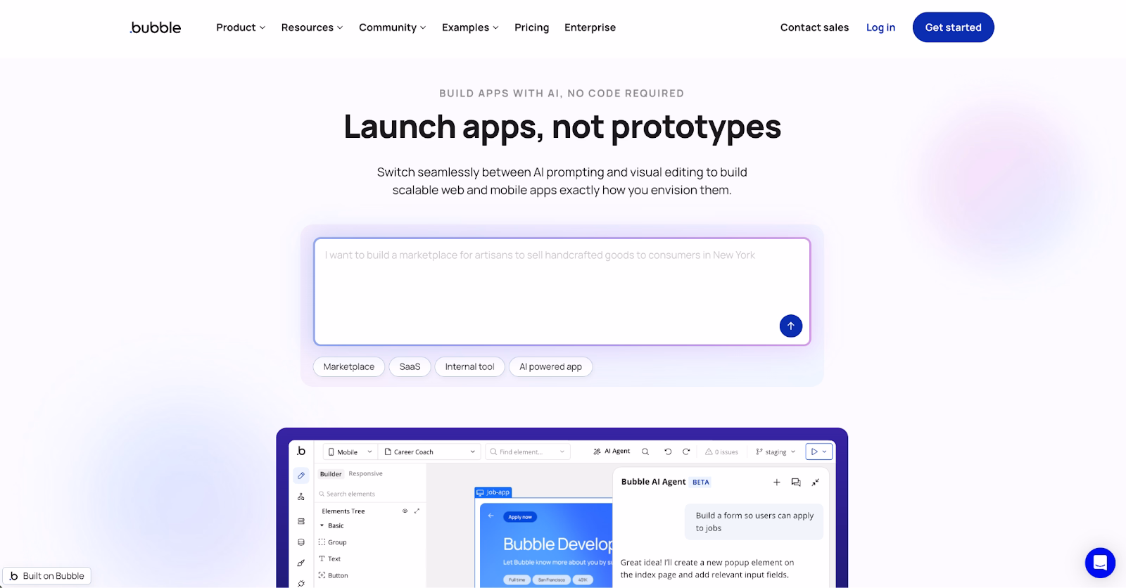 Bubble turns ideas into functional web apps through visual logic and responsive design. It’s ideal for SaaS and marketplace projects where custom logic matters more than templates.