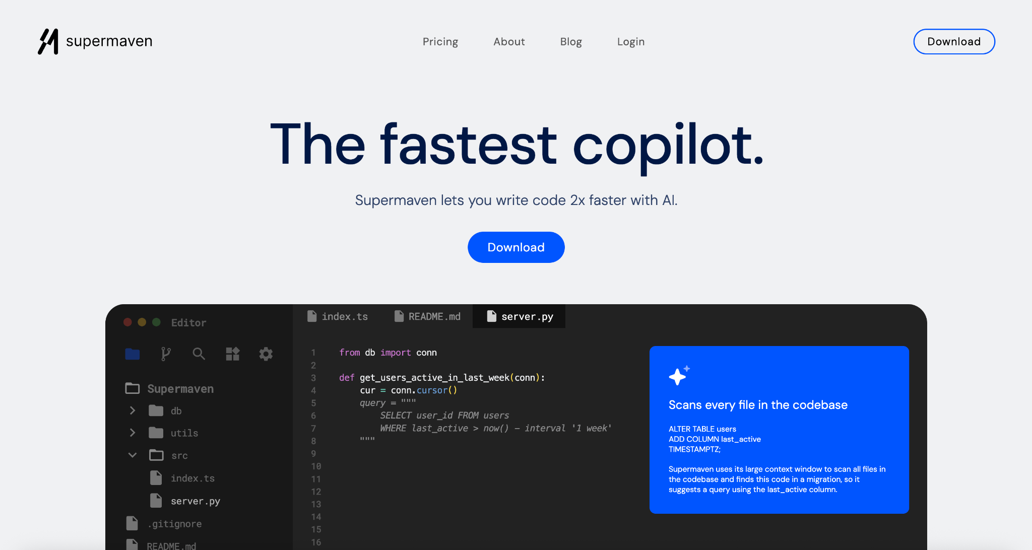 - Choose Supermaven for the fastest autocomplete experience with massive context windows.