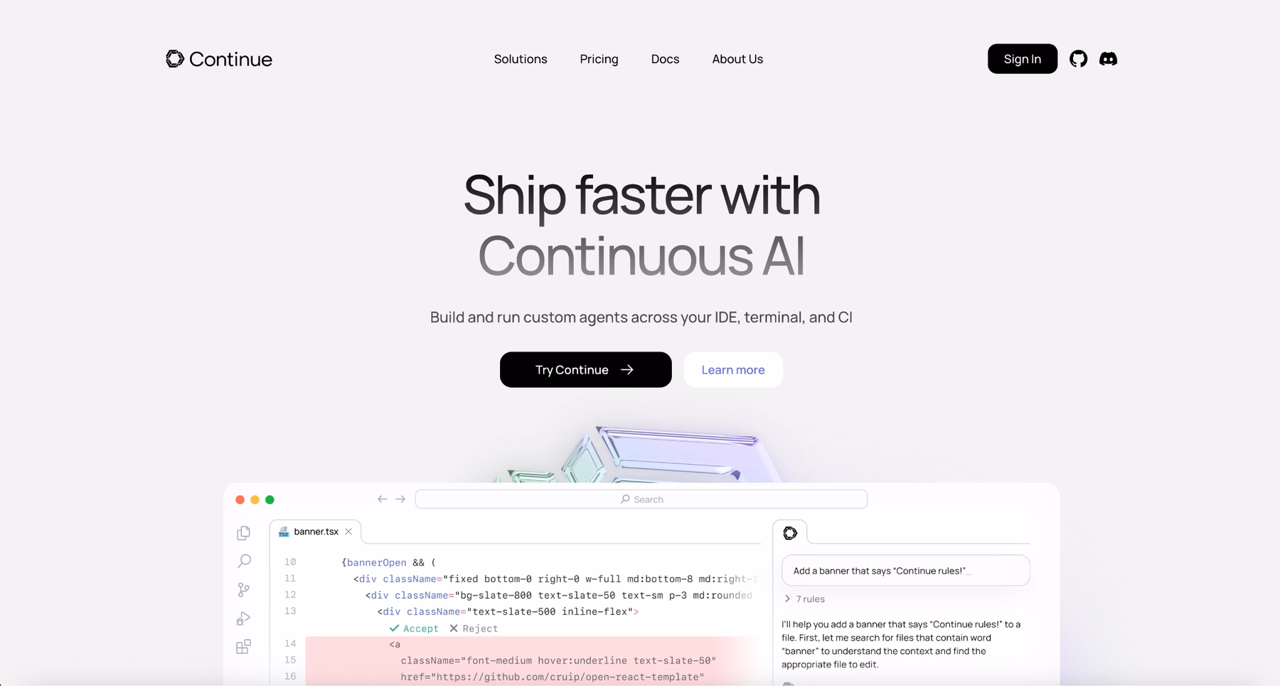 Continue offers maximum model flexibility as a VS Code and JetBrains extension with MCP support.