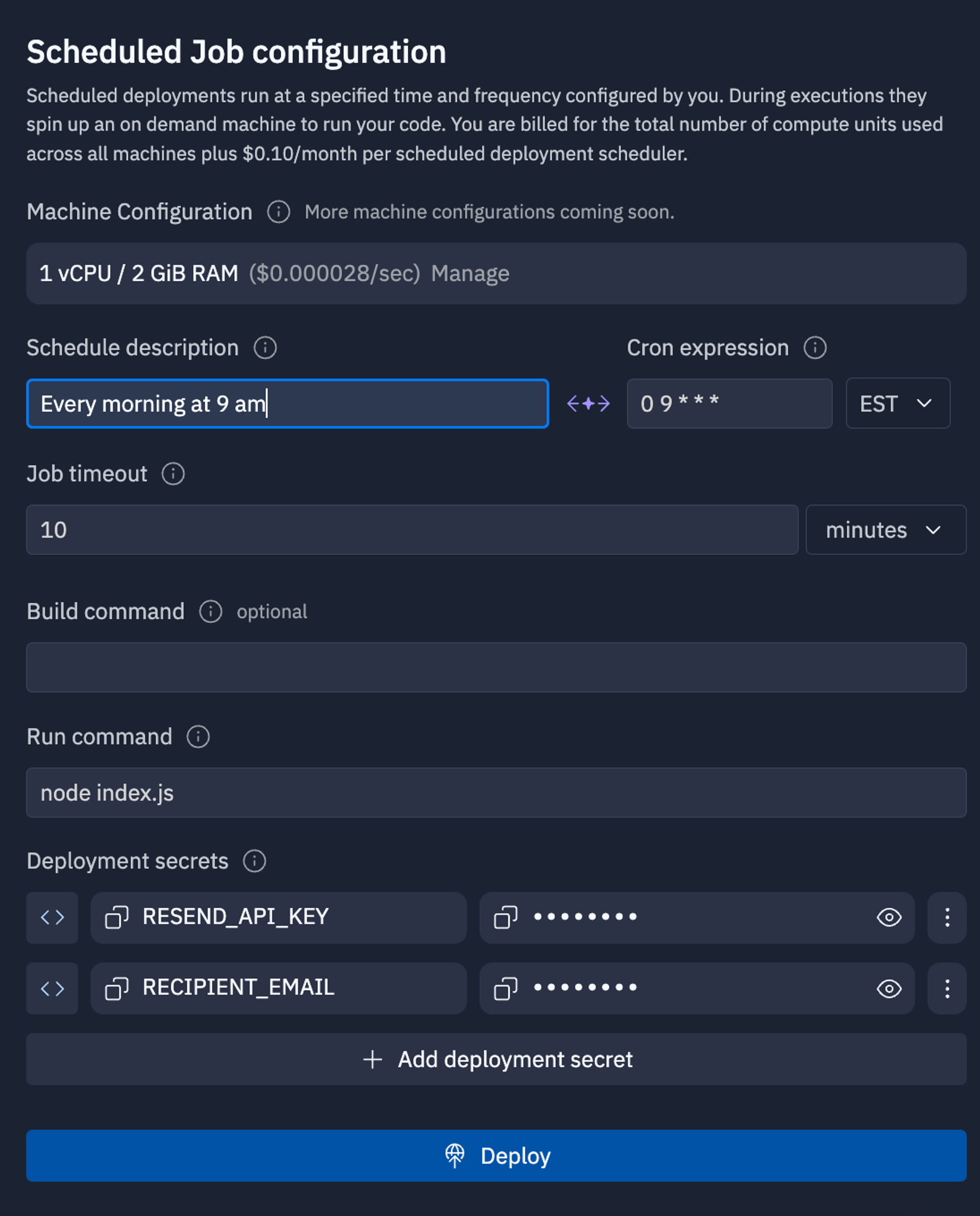 Type in the frequency that you want it to run, and click “Deploy.” Once it successfully deploys, you should be good to go!